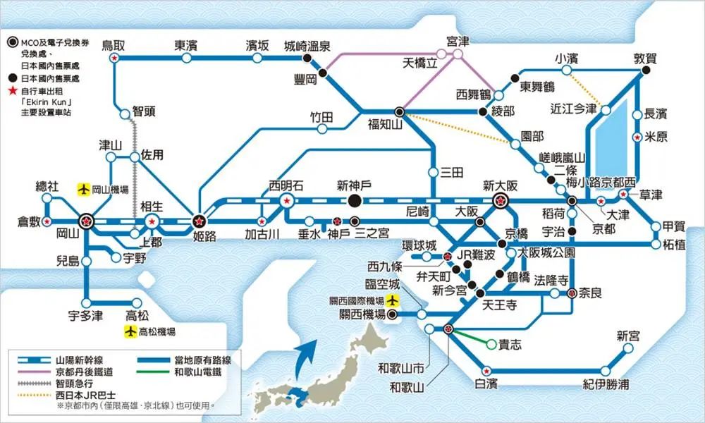 如果大阪、京都闹区景点都已经逛遍,这张票券能够前往冈山、高松、天桥立、鸟取、成崎温泉、白滨,绝对是你探索更多近郊景点的最佳选择。