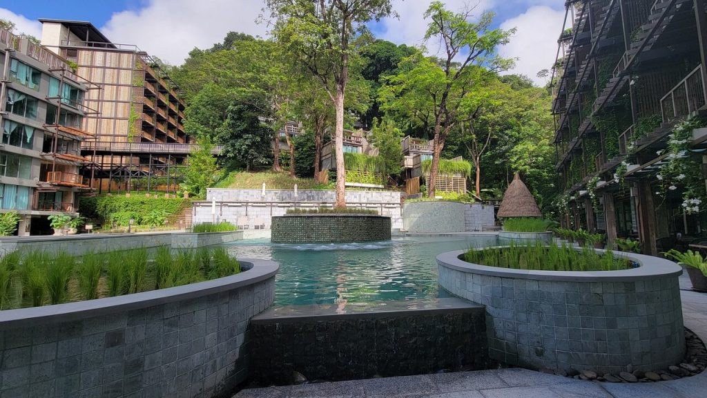 酒店大堂被室外的绿植环抱,晚上犹如在热带雨林,露天泳池也是酒店的一大亮点,随手一拍出片就是能惊艳朋友圈的程度,有一种精致自由的南洋风情~
