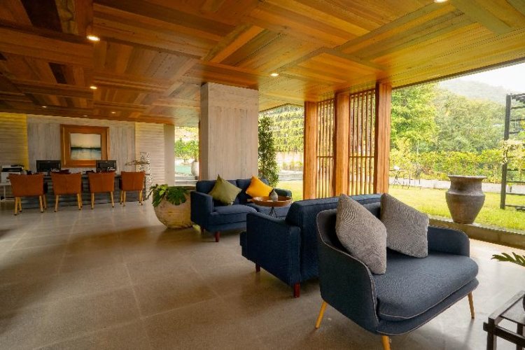 酒店被郁郁葱葱的绿色植物和壮丽的山景包围,房间没有外墙,仅用一块白布做了遮挡,收起白布,房间就完全与周边环境融为一体。