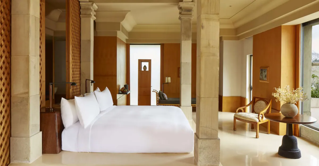 室内以纯正的安缦美学理念呈现——刷满清漆的原木、蜜色大理石、宗教主题的艺术品和音乐……穿插其中,你不会觉得自己身处酒店,而是置身Adrian Zecha的私邸。