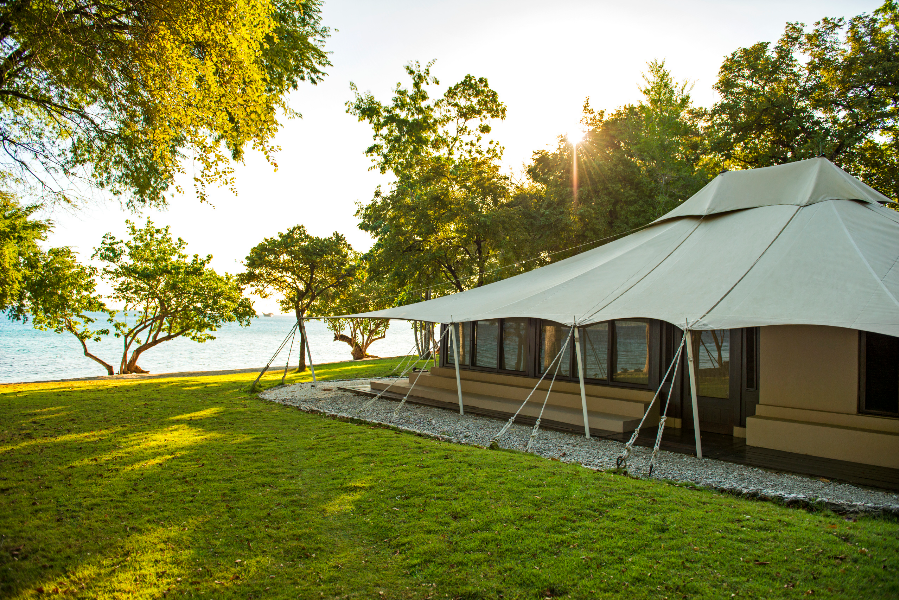 海洋帐房正如其名,靠近海洋,沿着沙中路径,可通往海滩。每一间帐房都设有柔性防水屋顶及独立的帆布质室内空间,配有明亮窗户、一个起居室、超大卧床、书桌及一间大洗手间。