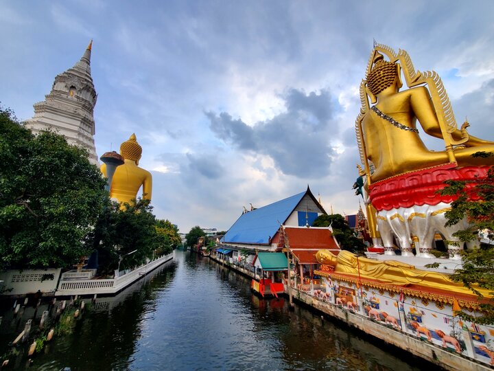 最能体现曼谷佛寺与都市街景交织的地方,水门寺原是皇家寺庙,2020年重建后,那20楼层的金色大佛惊艳了世界。