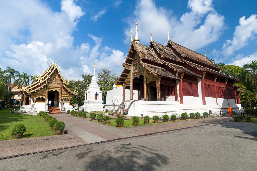 进入古城内,最值得逛的就是「帕辛寺」,作为泰国最古老和香火最旺的寺庙之一,华丽景美的金塔和镶嵌画很好看,绿植环绕的小花园也值得拍拍(20铢门票,06:00-18:00)。