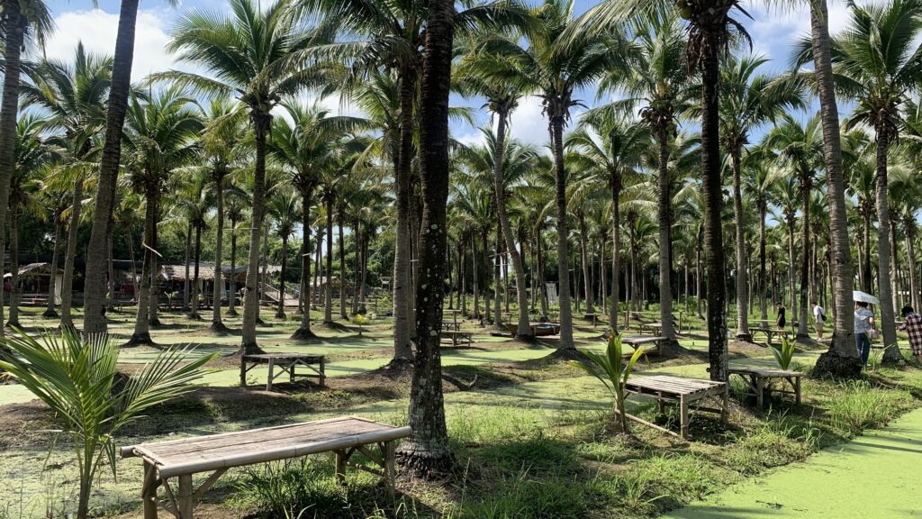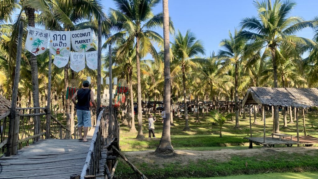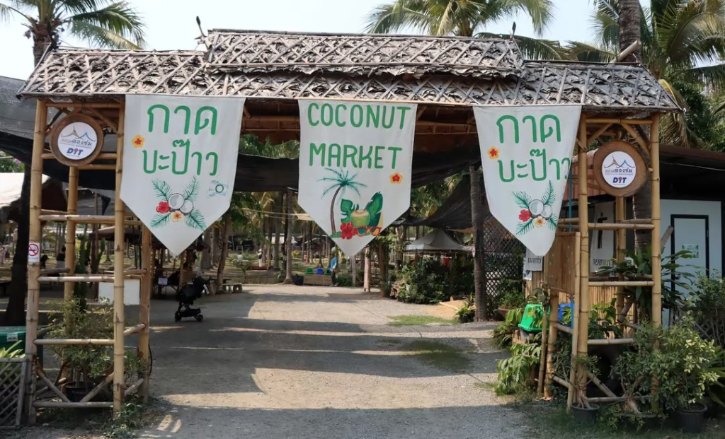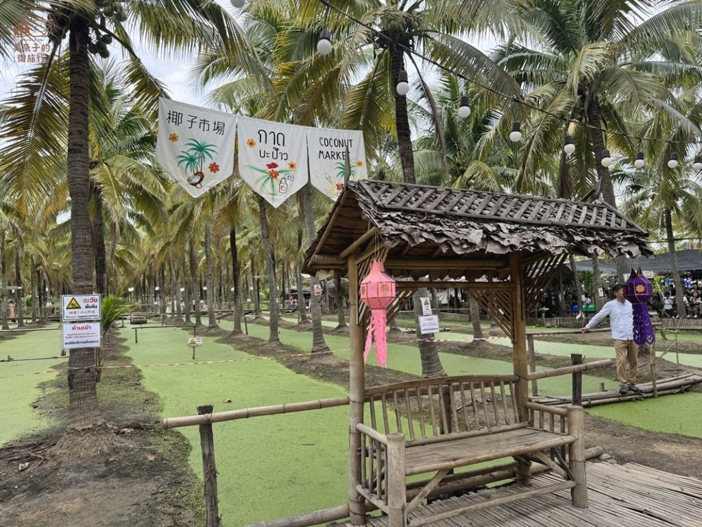 椰林集市(Ba pao flea market),藏在一大片椰林里的集市,抹茶般的绿色河道遍布椰林,站在小竹桥上走走,仿佛来到丛林秘境。市集是每周六、日8:00-15:00才有,会有当季最新鲜的水果售卖,还有些小吃也可以买来尝尝。