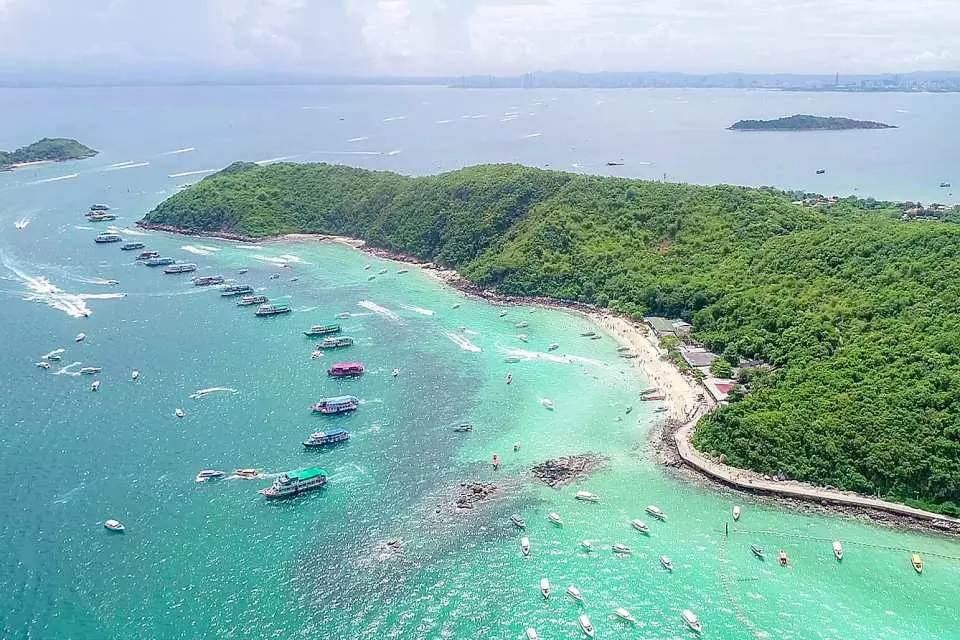 从芭提雅1号码头坐船,就可以到有果冻海的格兰岛了。去程大概50分钟,回程快点,一个人30铢的船票。