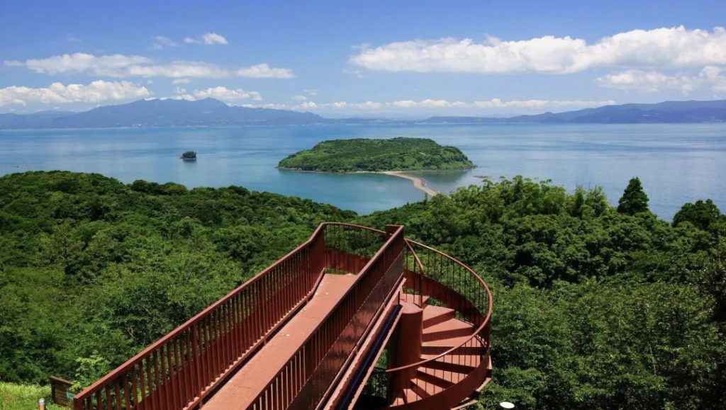 指宿市拥有日本九州地区最大的湖泊——池田湖。每年1月第二个星期日,伴着湖边盛开的油菜花,这里会举行一年一度的指宿油菜花马拉松,是指宿的一大盛事。你还可以来指宿一边享受砂蒸一边看海是独有的乐趣。而每年3月至10月退潮之时,还可以沿着一条800米砂道,踏上神秘的无人岛——知林岛,体会被大海包围的感觉。