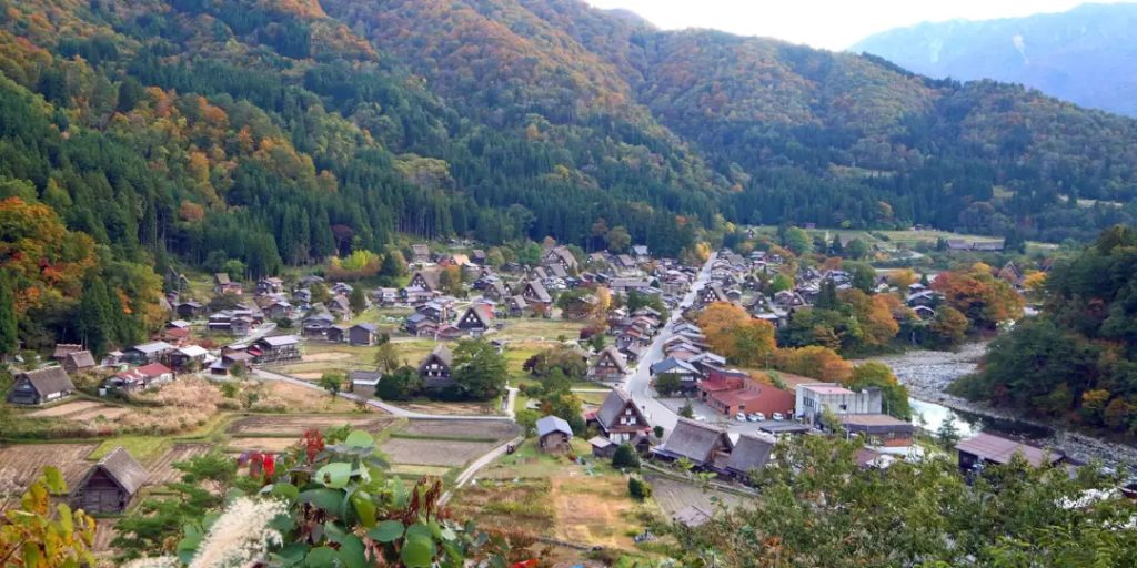 人字形屋顶建筑群落散落在一片平原各处,皑皑白雪的世界里,小屋内的灯光温暖地点亮着,就像童话绘本里的小世界。这就是很多人对白川乡的印象。这片人字形屋顶建筑的正式名称叫“合掌造集落”,缘于屋顶像人的手掌拱在一起的形状。尖耸的屋顶为了便于积雪滑落,以避免压垮房屋。1995年12月被联合国教科文组织登录为世界文化遗产,从而被全世界的人所熟悉和喜爱。