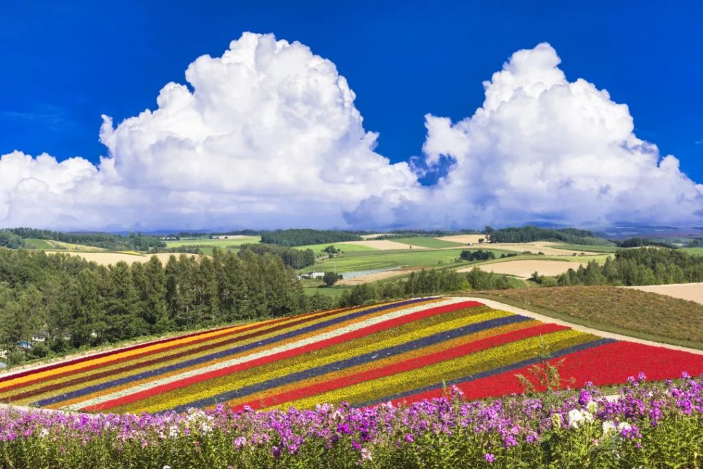 人们都说在美瑛不用出门,推开一扇窗就是一幅画。因为特殊的丘陵地貌和起伏的花海,使得这里一年四季,就像大自然的画板,任凭各种颜色此消彼长,生机盎然。“patchwork之路”和“panorama road”是必逛之地,前者美在犹如拼布艺术的农田风景,后者美在“四季彩之丘”这座代表性的花园,很多打动人心的美瑛美图正是出自这里。