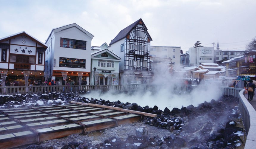 草津温泉是日本三大名泉。整个草津町的人口才7000人,但每年游客却高达300万人以上,可见人气之高。在日本各种温泉排行榜上,草津温泉也常常位居榜首。位于温泉街中心的“汤畑”是草津町的标志,每分钟4000升的温泉涌出量使得这里常年白雾缭绕,与周围的建筑形成一道独特的风景。