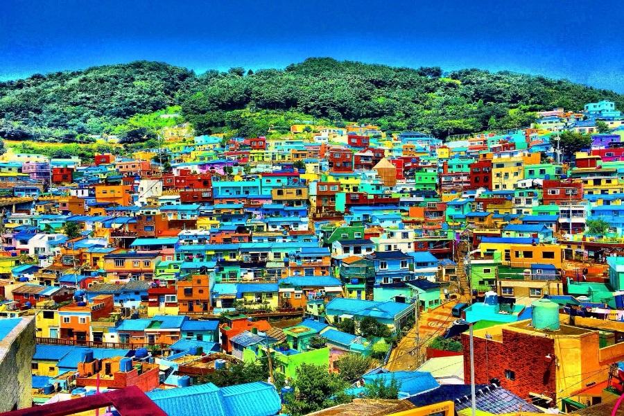 被誉为”韩国圣托里尼”,彩虹色的小房子在阳光下闪耀,仿佛步入童话世界。