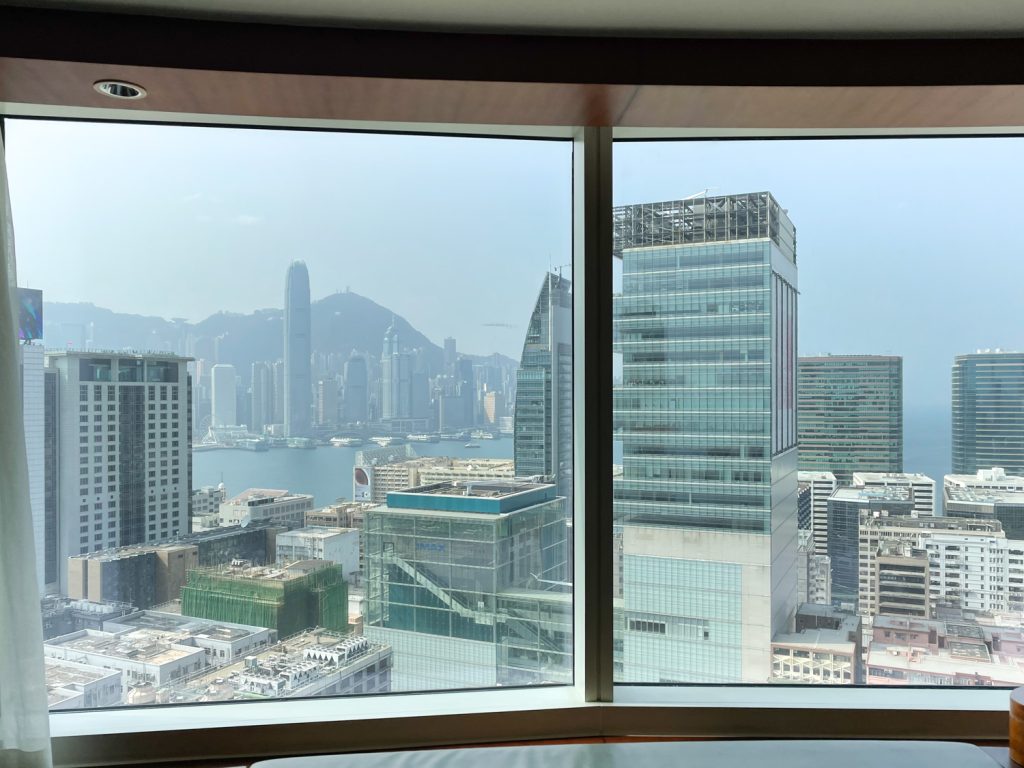位置在中环,港铁中环站出站大概20米就到,很方便,窗户外的维多利亚港景色是一大亮点,去太平山顶,步行到缆车点十分钟左右,与置地广场、ifc都有廊桥链接!