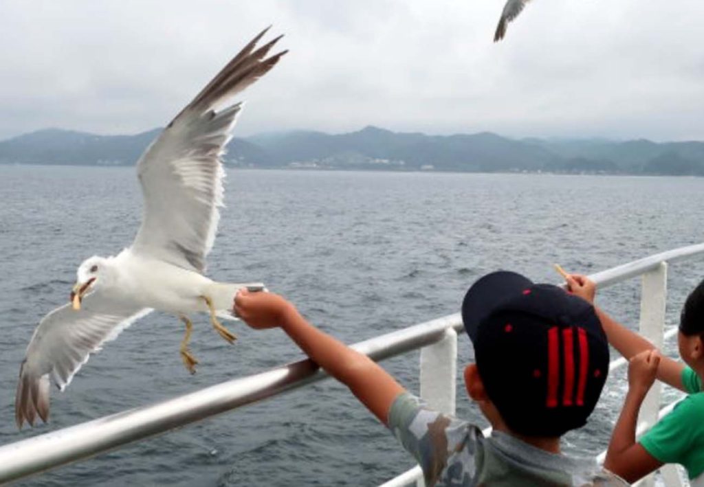 在大约40分钟的渡轮上,大家可以前往甲板,欣赏东京湾的美丽景色。运气好的话,还可以看到海鸟,大家还可以去海鸟哦!温馨提示:喂海鸟的时候,注意不要被海鸟咬到哦!据说有些小伙伴们说被咬到手指的时候有点疼!大家可以在渡轮里面的商店里买虾味的仙贝饼然后去甲板喂海鸟。也可以选择在船舱内休息一下吃点东西哦!