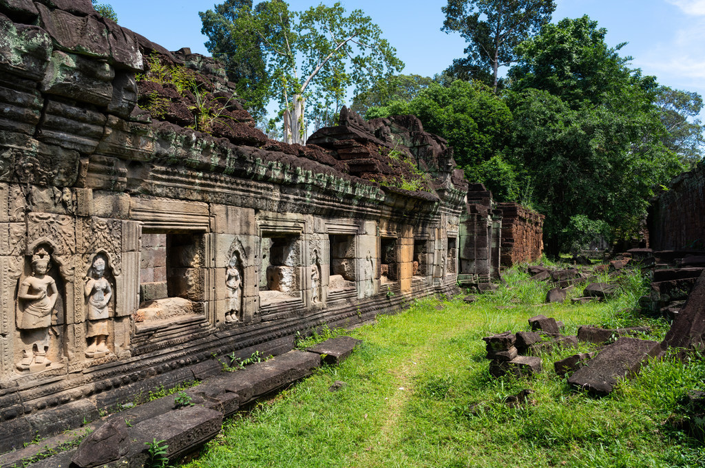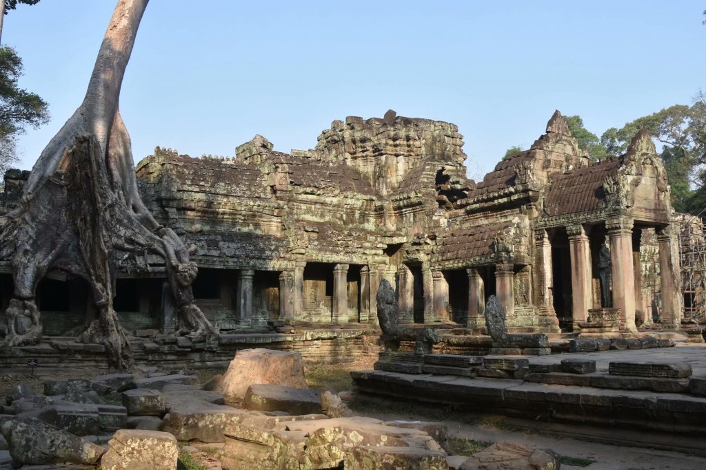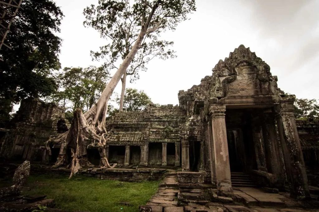 塔普伦寺(Ta Prohm),由吴哥王朝国王阇耶跋摩七世(Jayavarman VII)在1186年为其母亲建造。这座寺庙不仅是一处宗教圣地,也是艺术与自然的完美结合,以其独特的树根缠绕的景象而闻名。