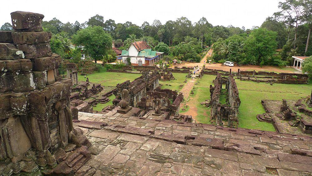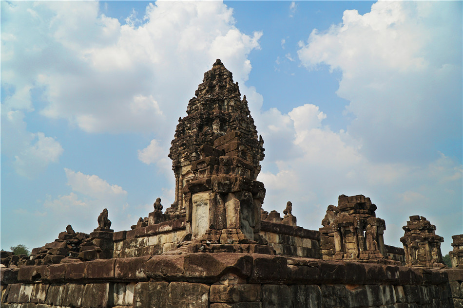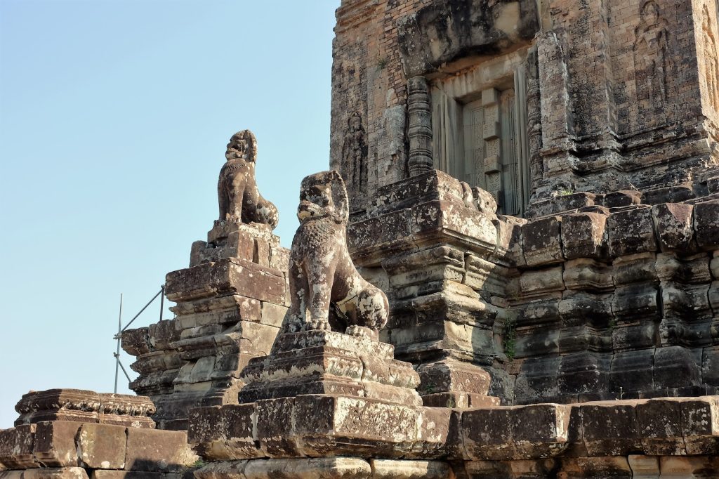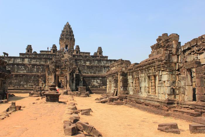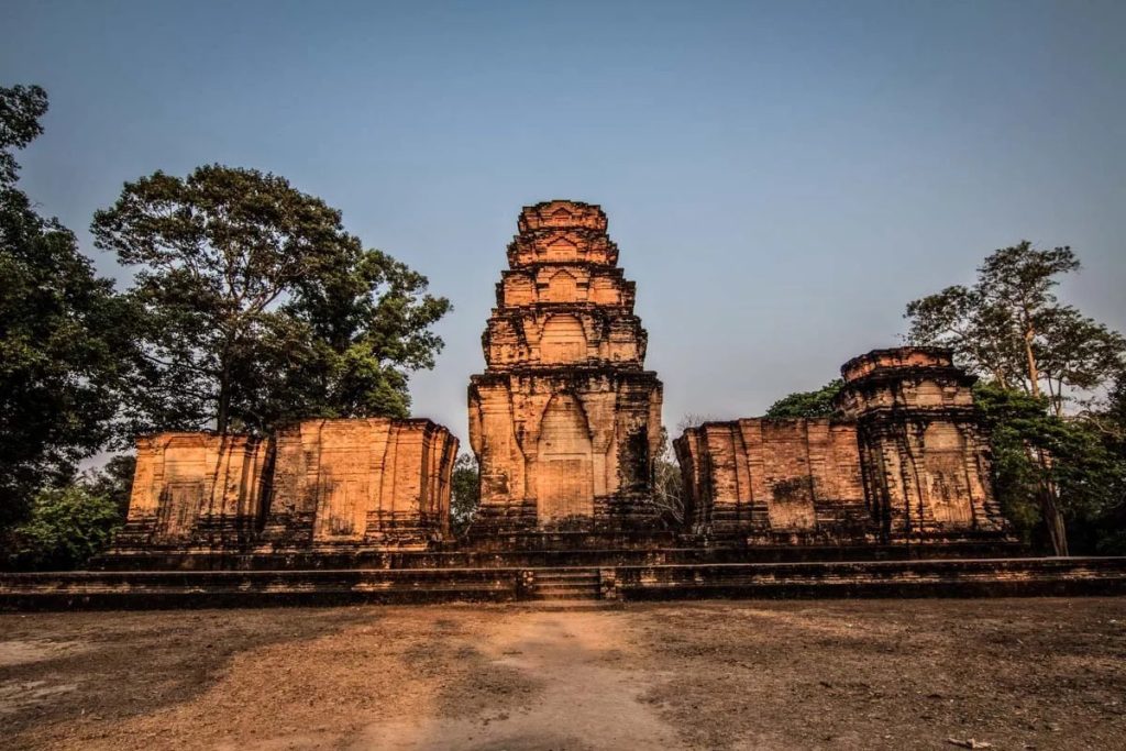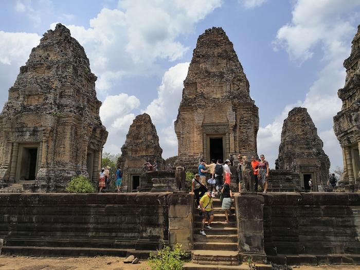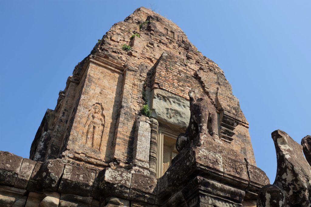 比粒寺(Pre Rup)建于10世纪,是罗贞陀罗跋摩二世(Rajendravarman II)和阇耶跋摩五世(Jayavarman V)时期的建筑。这座寺庙也被称为“变身塔”,因为它是古代皇族进行火葬仪式的地方,他们相信死后可以“变身为神”。比粒寺的建筑特色是其金字塔式的结构,用红砖建造,共有三层,每一层都有精美的雕刻和装饰。