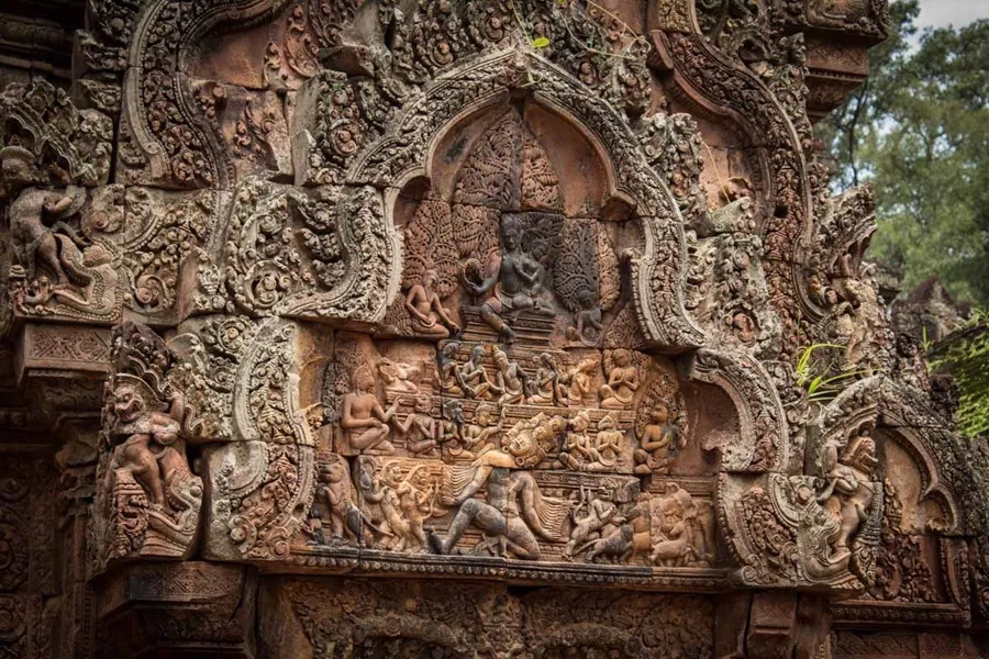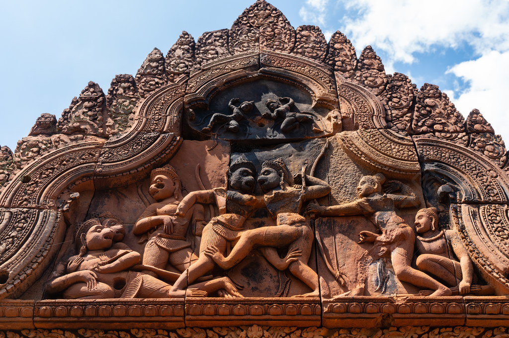 女王宫的规模虽然不大,但其艺术价值极高,被认为是古代高棉雕刻的最高峰。它不仅是吴哥古迹中风格最独特和最精致的建筑群之一,而且其建筑和雕刻展现了吴哥王朝的宗教信仰和艺术成就。