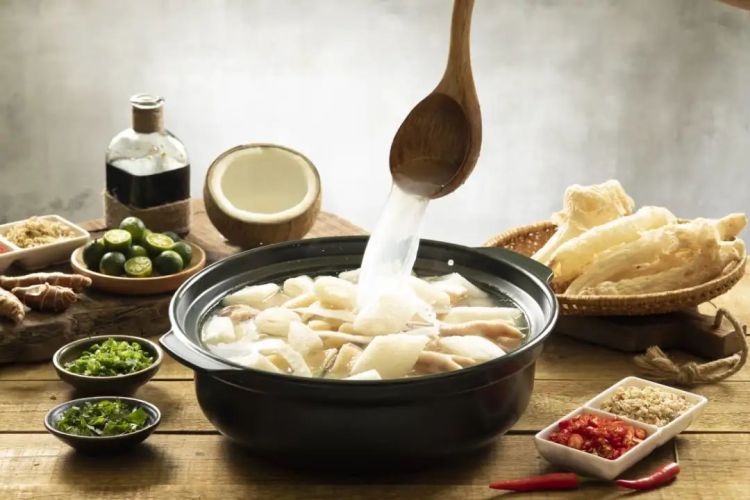 汤椰汁鸡汤是柬埔寨的一道家常菜,选用鸡肉、椰浆、香料等食材烹制而成。汤品浓郁香滑,鸡肉鲜嫩多汁,搭配米饭食用,味道更加美妙。