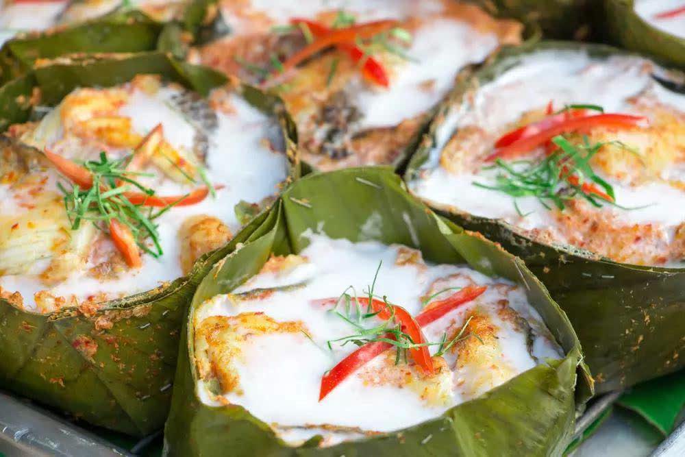 阿莫克鱼是柬埔寨的经典美食之一,选用新鲜的大头鱼,搭配香料和椰浆烹制而成。鱼肉鲜嫩多汁,椰浆的香甜与鱼露的咸鲜完美融合,令人回味无穷。