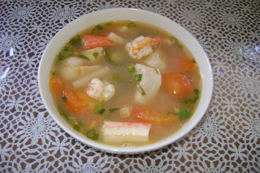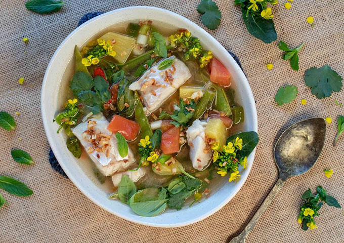 酸味汤是柬埔寨的一道家常菜,选用鱼肉、蔬菜、豆芽等食材,搭配柠檬草、姜黄等调料烹制而成。汤品酸辣可口,开胃消食,是柬埔寨人喜爱的下饭菜之一。
