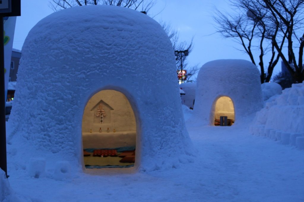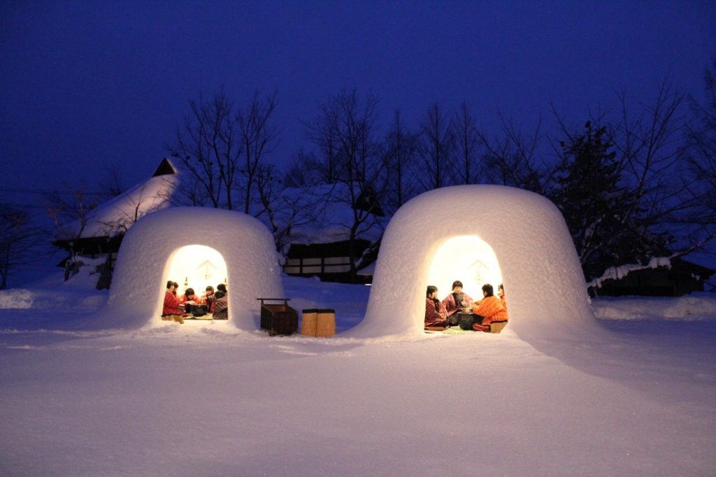 每年2月的15、16日,横手的街区上就会出现许多大小不等的雪洞,小雪洞的里面还会放上灯火,待到傍晚时分,齐齐点亮,营造出一个梦幻的空间。