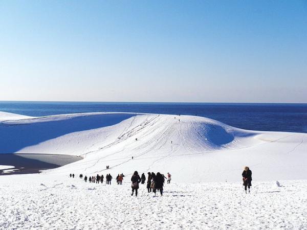 一般人对于沙丘的认知,都是适合夏季游览之地。但是!冬季的鸟取沙丘更美!完全被积雪所覆盖,银白的世界一片空旷,和其他季节形成强烈的对比,更有误入了无人的绝美仙境之感。