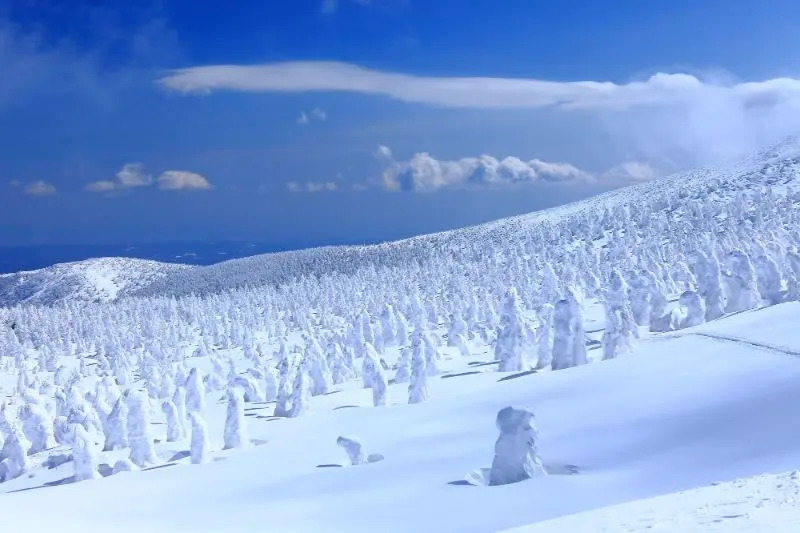 想要看雪,不能不去的还包括日本的东北地区,而这里最有名的雪乡就包括了藏王温泉,藏王“树冰”可是难得一见的绝妙景象哦!