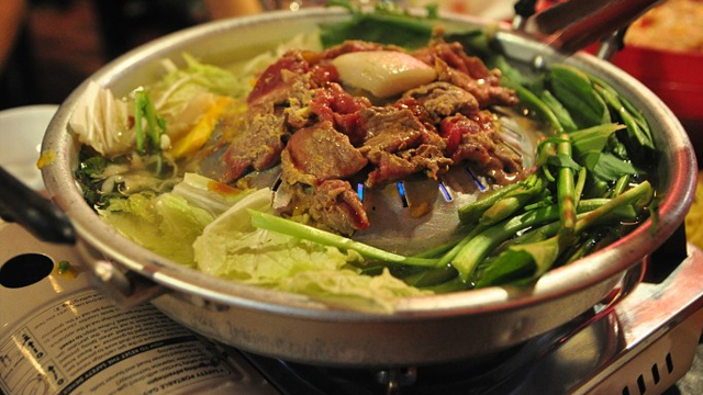 与中国火锅不同,柬式火锅以清淡为主,主要配料是当地的香料和药材,味道清甜而鲜美,配菜有牛肉、青菜、小饼和各种特色蘸料。煮熟的肉配上青菜卷在饼里蘸料吃,口感独特而美味!