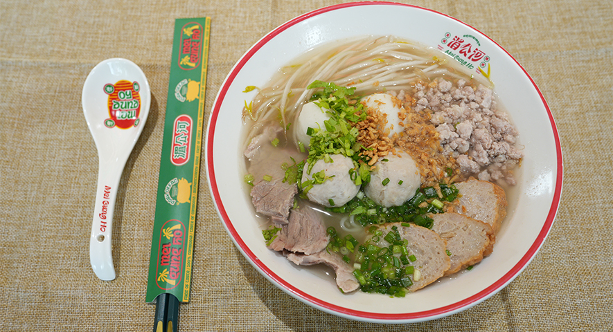 米粉界的内卷王!粉白如珍珠,晶莹剔透,口感极好。抓米粉、下酱料,加配菜(柠檬、米椒等),最后灌汤底。上班族的早餐~