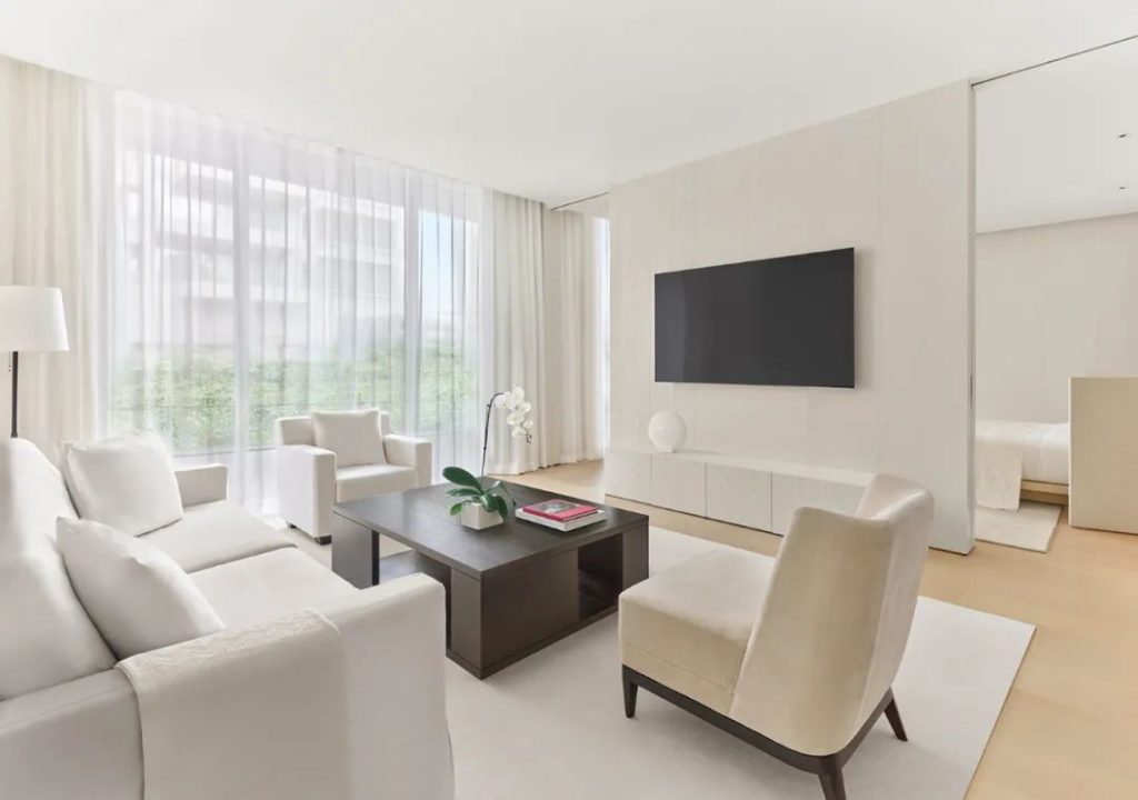 房间设施齐全,配有Nespresso咖啡机、迷你吧、过滤饮水机、室内保险箱、WiFi、智能充电中心、毛绒浴袍和拖鞋。部分套房还拥有小厨房和化妆间。