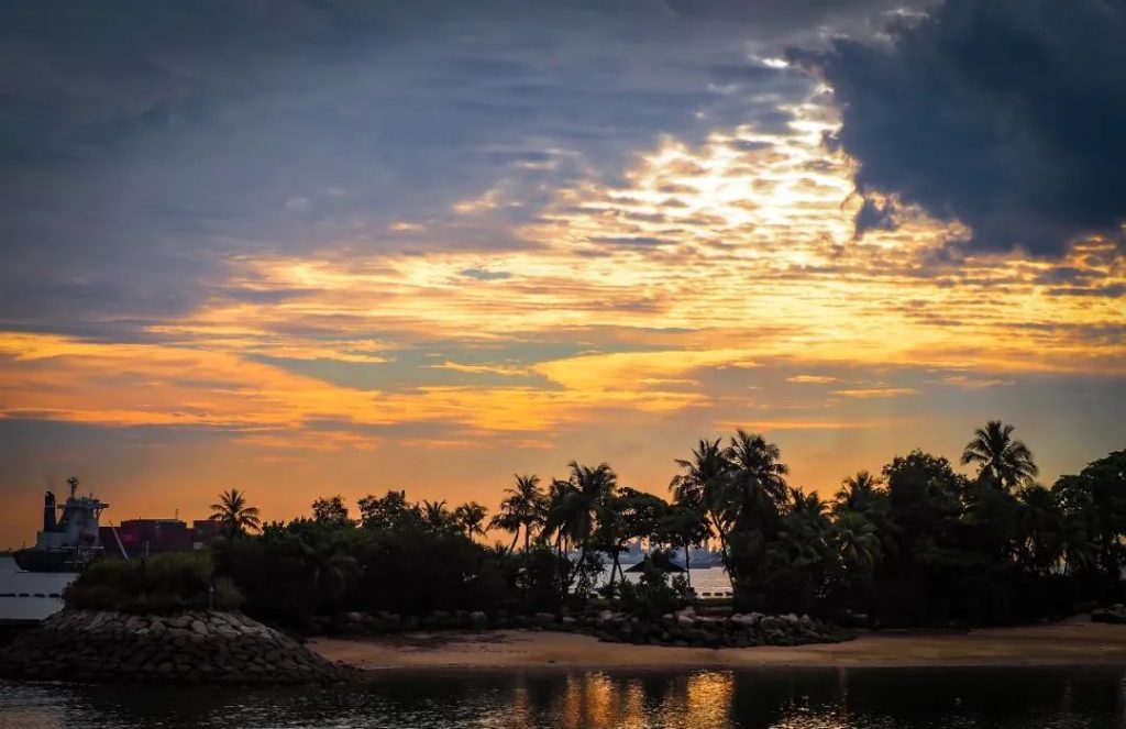 港口,应该是新加坡的重要生命线。作为马六甲海峡的重要交通枢纽,港口带给新加坡源源不断的财富。从海边看到,大型的货轮不断运输各种货物抵港,然后由小型货运船只分散到港口的各个角落。在落日的余晖下,依然能感受到港口的繁荣。