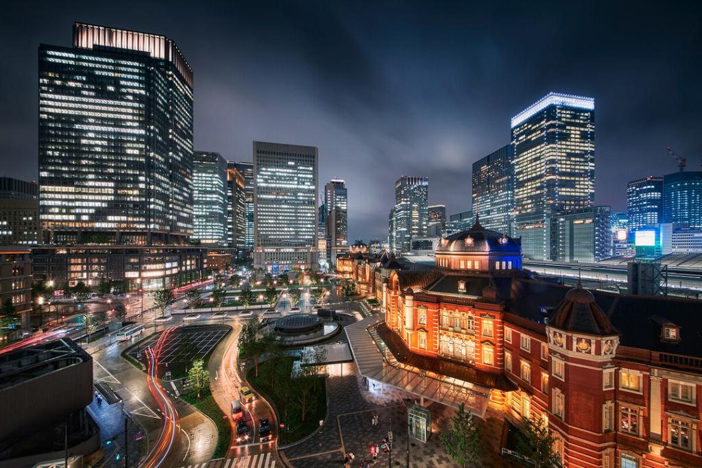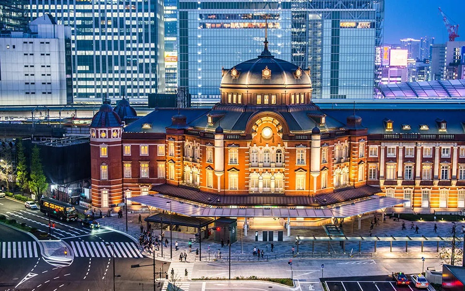 东京火车站位于千代田区丸之内1丁目。东京站最早于1914年建成并投入使用,其中最早使用的丸之内侧站房是由明治时代建筑家辰野金吾设计的仿西式砖造建筑。在二战末期的1945年因为轰炸而被毁,在2012年完全修复之后重新投入使用。现在,东京站不但是日本的交通枢纽之一,也是许多游客去到东京后一定会打卡的地点。因为其最早为红砖建筑,东京车站也被称为“红砖车站”(赤レンガ駅)。