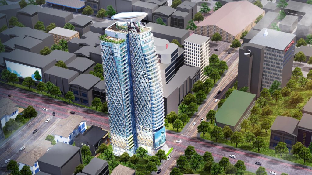 利鑫CEO中心位于柬埔寨首都金边总理府旁,33层高130米,AB双塔式流线设计,斩获Cambodia Property Awards(最佳高端公寓,最佳公寓建筑设计,最佳办公室规划)3项首奖肯定;是一座集天幕大平层、高奢写字楼、五星级酒店公寓于一体的商住综合体。