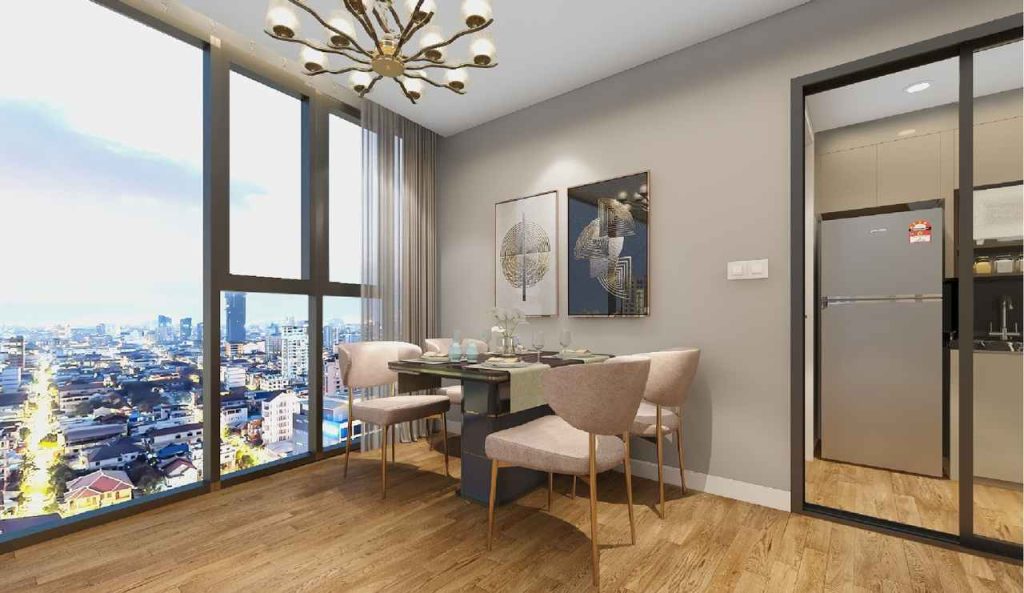 王府观邸服务式公寓坐落于金边最核心最繁华的BKK1区,是该区域43层、145米的地标建筑。项目规划以1,000㎡沉浸式空中花园、800㎡儿童乐园、240米天空慢跑道以及金边首个第三阅读空间、顶层无边泳池,将豪华公寓所需的生活追求与现实健康生活态度用心结合。