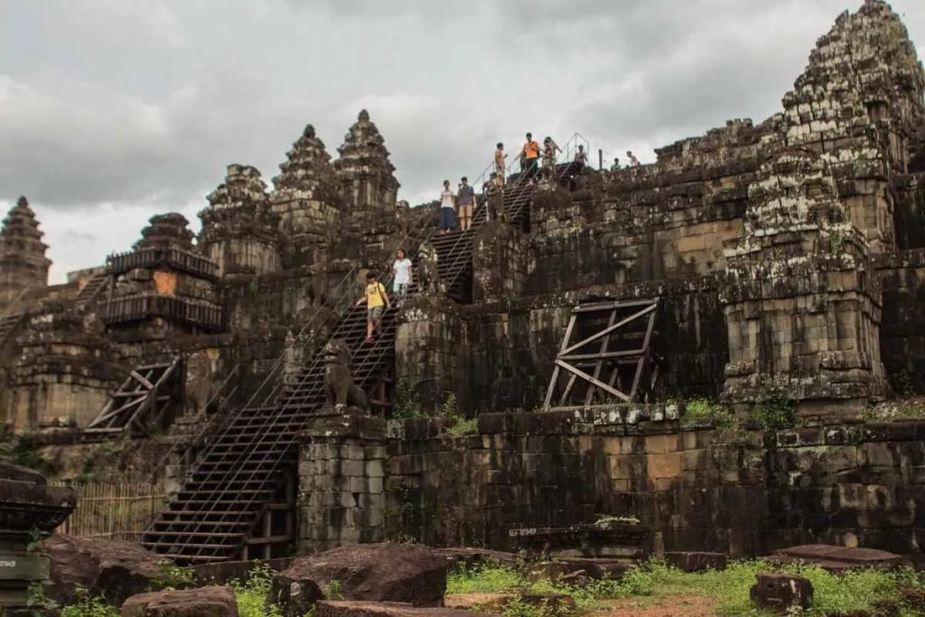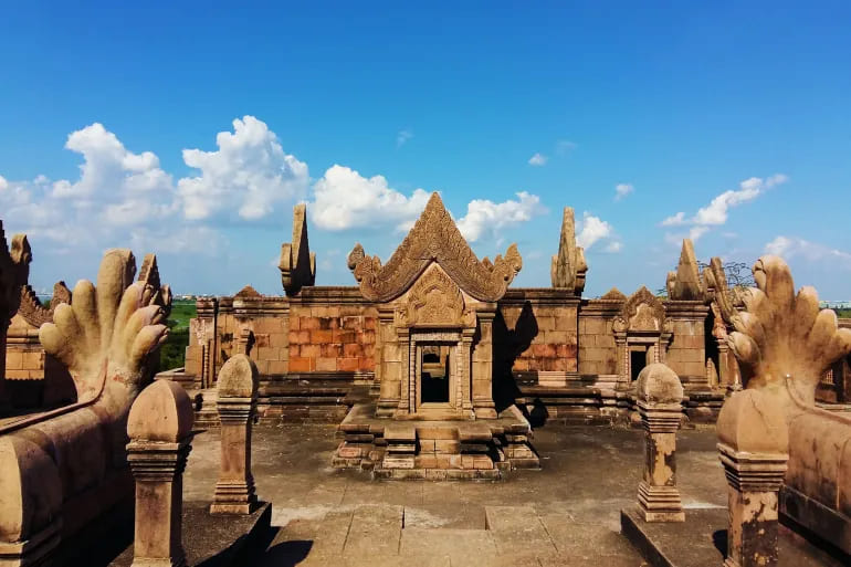 第三位君主因陀罗跋摩一世即位后,首先在这里建造了神牛寺,而后又建造了国寺——巴孔寺,用于供奉湿婆神。历经千年风雨沧桑,寺里的石狮和阿修罗浮雕仍保存完好。