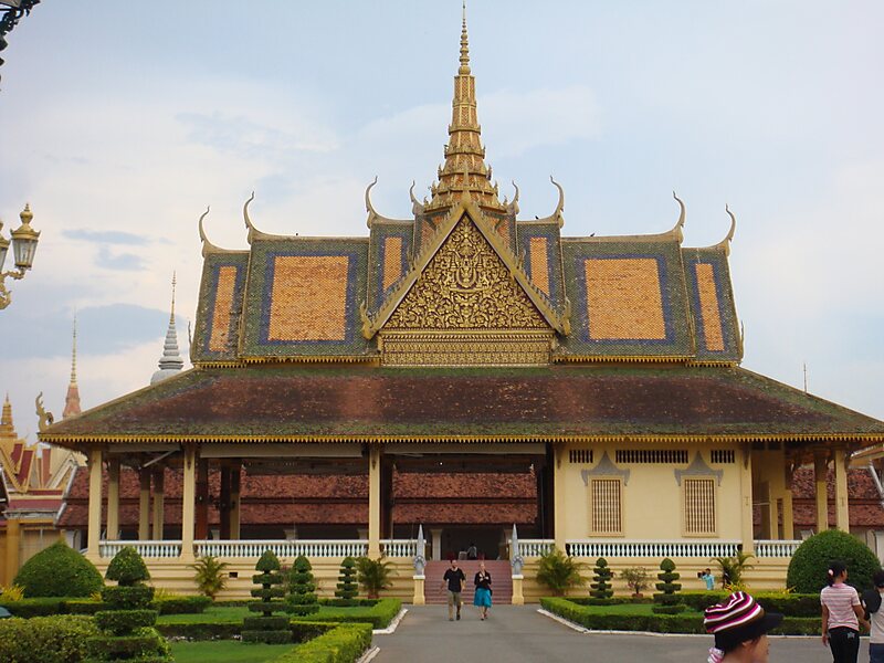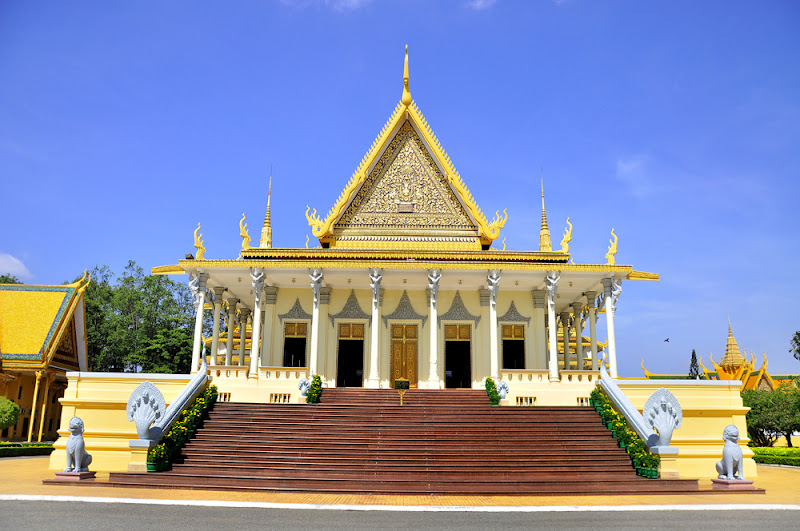 金边王宫是柬埔寨王国曾经的权利象征和皇家住所。王宫是诺罗敦国王于1866-1870年建造的,由柬埔寨的顶尖建筑师所设计,是一座将传统与新文化元素结合融汇的园林式建筑群。其坐落于金边东面,面对湄公河、洞里萨河、巴沙河交汇而形成的四臂湾,因此也称四臂湾大王宫。