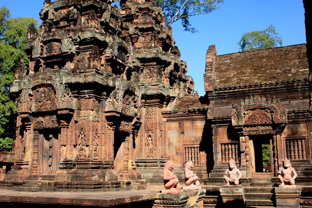 第九位君主罗真陀罗跋摩在位期间,吴哥王朝雕刻艺术的巅峰之作——女王宫开始了营建。这座供奉湿婆和毗湿奴神的精致宫殿,被誉为吴哥建筑群里的珍珠。
