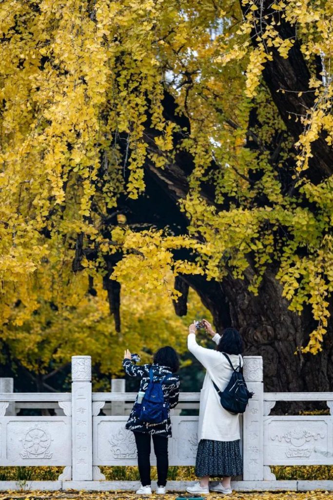 晚秋时节,古银杏下的红墙青瓦更加古韵十足。