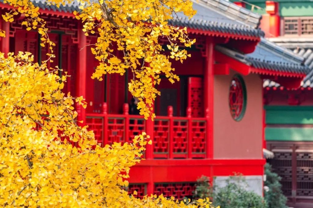 雕梁画栋与金色树叶相互辉映,繁华与古朴无缝连接,现代与历史遥相呼应,怎么拍都能拍出视觉震撼的大片。