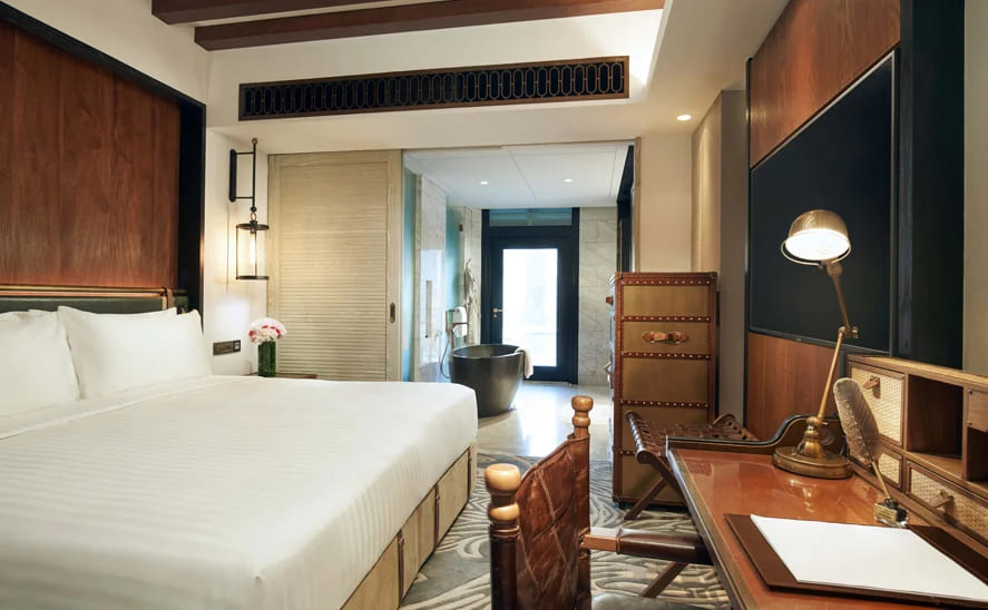 坐落于百年英军营房遗址,百瑞营圣淘沙酒店(The Barracks Hotel Sentosa)保留了旧时殖民建筑的砖墙、黄铜、木地板与高天花,一共仅有40间客房与套房,所有低层房型直通泳池与按摩池,部分高层设有私人阳台。它是安静优雅的,适合独旅者、情侣,或追求“复古式奢华”的人。