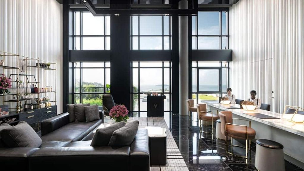 遨堡圣淘沙酒店(The Outpost Hotel Sentosa)整座建筑以黑白为主色调,融合金属与石材材质,构建出一种介于城市与海岛之间的锐利感。全酒店193间客房设计利落,床头装饰以航空元素、地图线条与定制小摆件,让人联想到公路旅行与间隔年冒险。每次入住都可免费定制一份专属迷你吧和享用一杯由 Pryce Tea 茶饮专家特别调制的清爽迎宾饮品。
