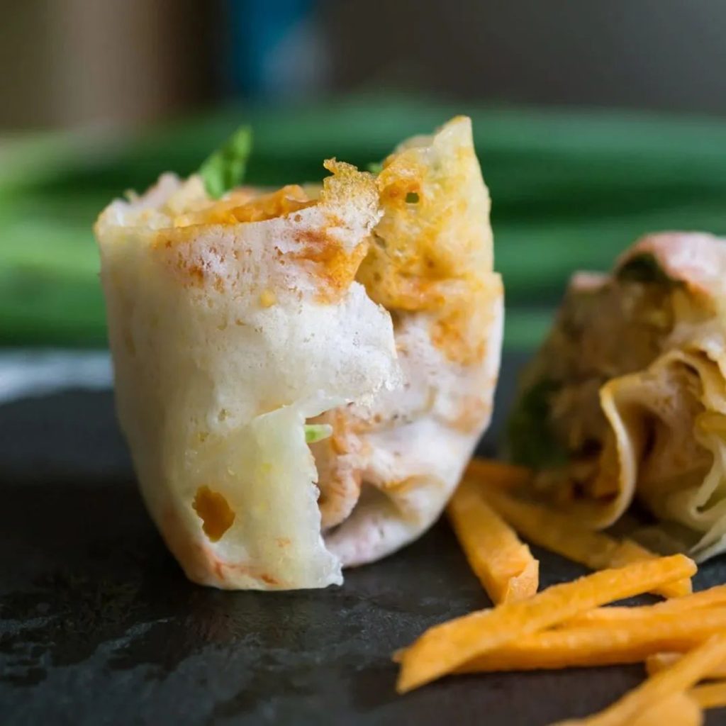 拆花蟹肉拌以咸鱼粉、蛋白做的河粉