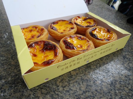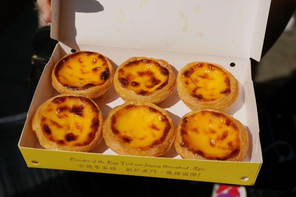 从诚昌出来,往官也街尽头走,就能看到 “安德鲁” 的绿色招牌 —— 作为澳门蛋挞的 “鼻祖”,这里的蛋挞永远是 “刚出炉的最好吃”。刚出炉的安德鲁蛋挞,外皮层层酥脆,咬下去会掉渣,内馅嫩滑得像布丁,蛋奶香浓到化不开,热的时候吃,还能尝到一点 “焦香” 的边,甜而不腻。买一盒(6 个,54 澳门元),坐在店外的长椅上吃,风吹过带着巷弄的香味,刚好给一天的 “暴走美食局” 收尾。小贴士:蛋挞最好现买现吃,放凉了外皮会软;如果想带回去,记得让店员装在保温袋里,能保持 1 小时酥脆。