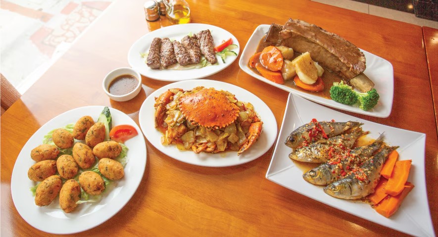 在氹仔旧城区的居民巷里,“小飞象” 的蓝色招牌很显眼 —— 店里的装修像葡式小家,木质桌椅上摆着小花,阿姐会用粤语问你 “要唔要饮冻柠茶?”。必点招牌葡国鸡,用陶瓷锅端上来时,椰浆的香味直往鼻子里钻。鸡肉炖得很软烂,一抿就脱骨,裹着咖喱和椰浆的酱汁,咸甜中带着一点香料味;下面垫的土豆吸满了酱汁,粉糯入味,连汤汁都要用来拌米饭吃。再点一份葡式炒蚬,蚬肉新鲜没沙,用蒜蓉、辣椒炒得香辣开胃,配着冻柠茶(18 澳门元),解辣又解腻。两个人点一份鸡 + 一份蚬,刚好能吃饱,人均 80 澳门元,比官也街的店性价比高。隐藏点:店里的 “葡式面包” 可以免费加,用来蘸葡国鸡的酱汁,香到舔盘。