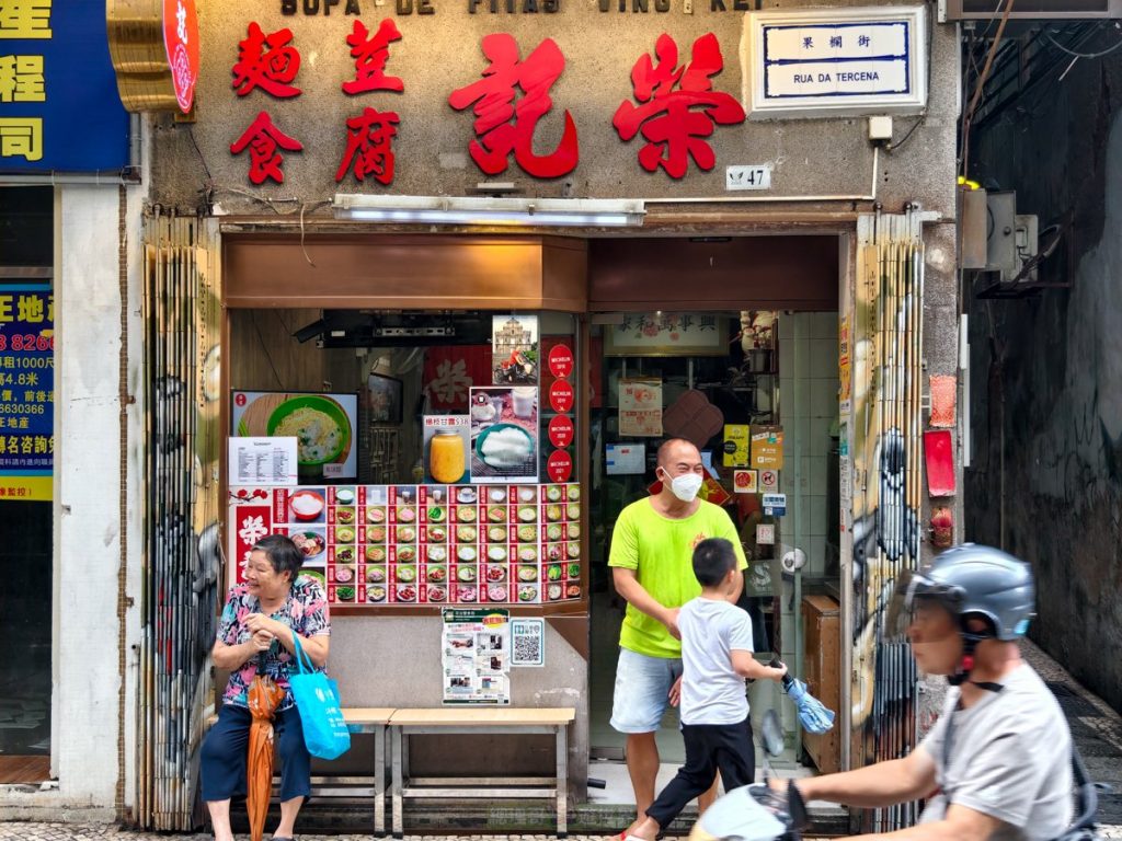 藏在十月初五街旁的 “荣记”,没有醒目的招牌,只靠居民口口相传 —— 推门进去,木桌木椅带着老澳门的温度,阿婆会笑着问你 “要冻嘅定热嘅豆腐花?”。必点冻豆腐花,用瓷碗装着,舀一勺能看到颤巍巍的质感,入口是浓到化不开的黄豆香,没有一点腥味,撒上白糖后,清甜顺着喉咙滑下去,夏天吃超解暑;如果是冬天,点一碗热豆腐花,暖乎乎的下肚,整个人都舒展开。店里的云吞面也别错过,竹升面煮得 “弹牙”,咬下去有嚼劲,云吞里裹着两颗大鲜虾,咬开时会 “爆汁”,汤头是用猪骨熬的,鲜得能喝光。阿婆煮面时会特意多煮半分钟,说 “后生仔牙口好,但软一点更入味”,像家里长辈一样亲切。小贴士:店里只收现金(澳门元、港元通用),豆腐花 12 澳门元一碗,云吞面 35 澳门元,建议早来,10 点后可能要排队。