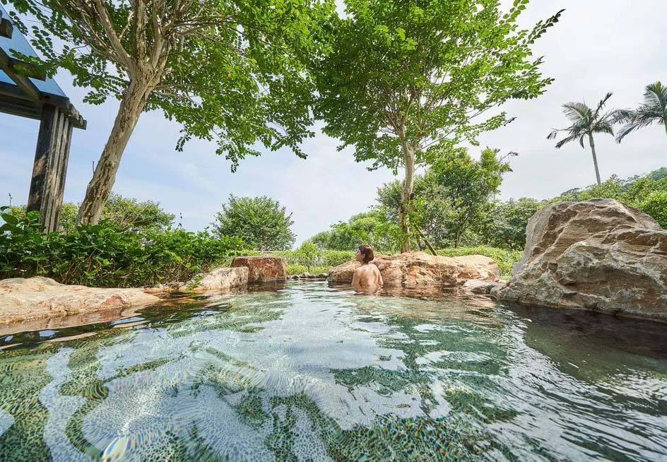 华丽的泉池设计更是饭店的一大亮点,饭店沁凉冷泉来自当地全年恒温的苏澳冷泉,温泉则是稀有的碳酸氢钠温泉,在占地辽阔的园区内,有各式各样的按摩水疗设施、12 楼视野绝佳的景观裸汤,客房内则设有私人独立浴池,可尽情泡汤。