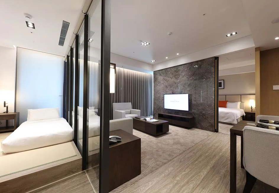 广泽荣一所打造的 140 间日式禅风客房,共有三种房型,经典、豪华、亚太套房,温暖明亮的空间设计感,木质色调暖色系家具,温馨又舒适!其中还有融合日本传统榻榻米,与和服织布的设计,更让人像是来到日本!
