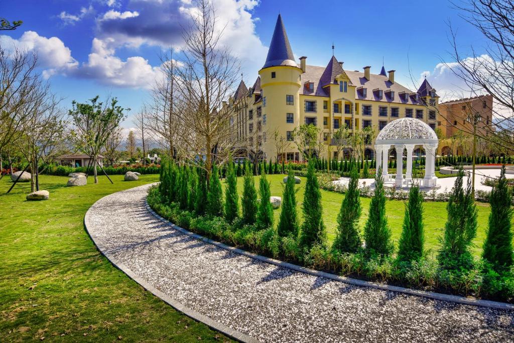 珑山林苏澳冷热泉度假饭店以柔和米白色调为主视觉,建筑风格融合文艺复兴时期对称、和谐建筑美学,让人有置身国外的错觉,欧洲宫殿式奢华及庄园城堡式的隽永之美。