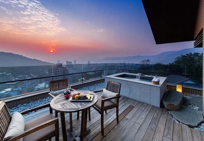 此外,每间客房都有独立温泉池,房客可以尽情在北投独有的白磺温泉池里放松身心,同时欣赏窗外怡人的丹凤山绿色山景,泡完汤再来杯热茶,人生就该如此享受啊!