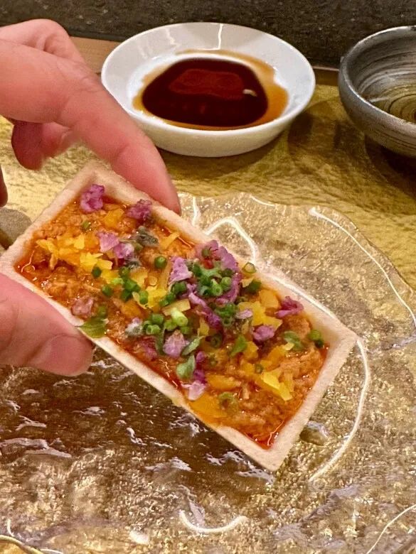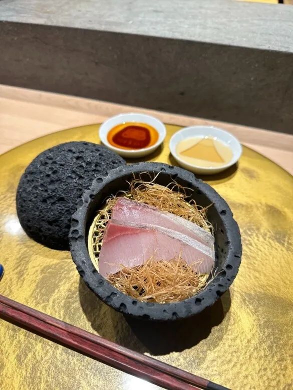 招牌淸酒蒸鲍鱼更是必尝之选,师傅于席前将鲍鱼放在昆布上,浇上淸酒,蒸煮几分钟至昆布及淸酒完全渗透鲍鱼之中,最后伴以充满脂香的肝酱,将来自大海的旨味完美升华。