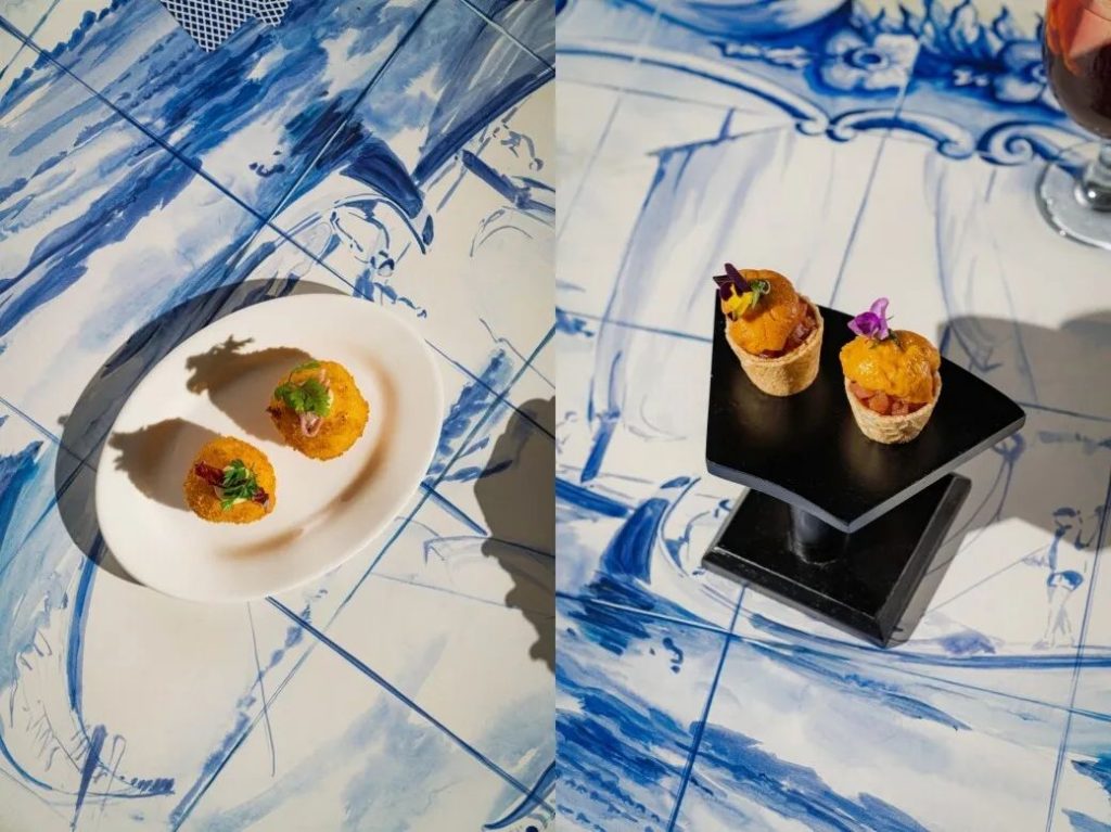 前菜推介有以西班牙火腿、蘑菇或鲜虾制成的西班牙炸丸子( $50-60 ),以及在薄脆的雪糕筒上缀以日本海胆、吞拿鱼他他及芥末牛油果蓉的海胆吞拿鱼甜筒( $180 )。