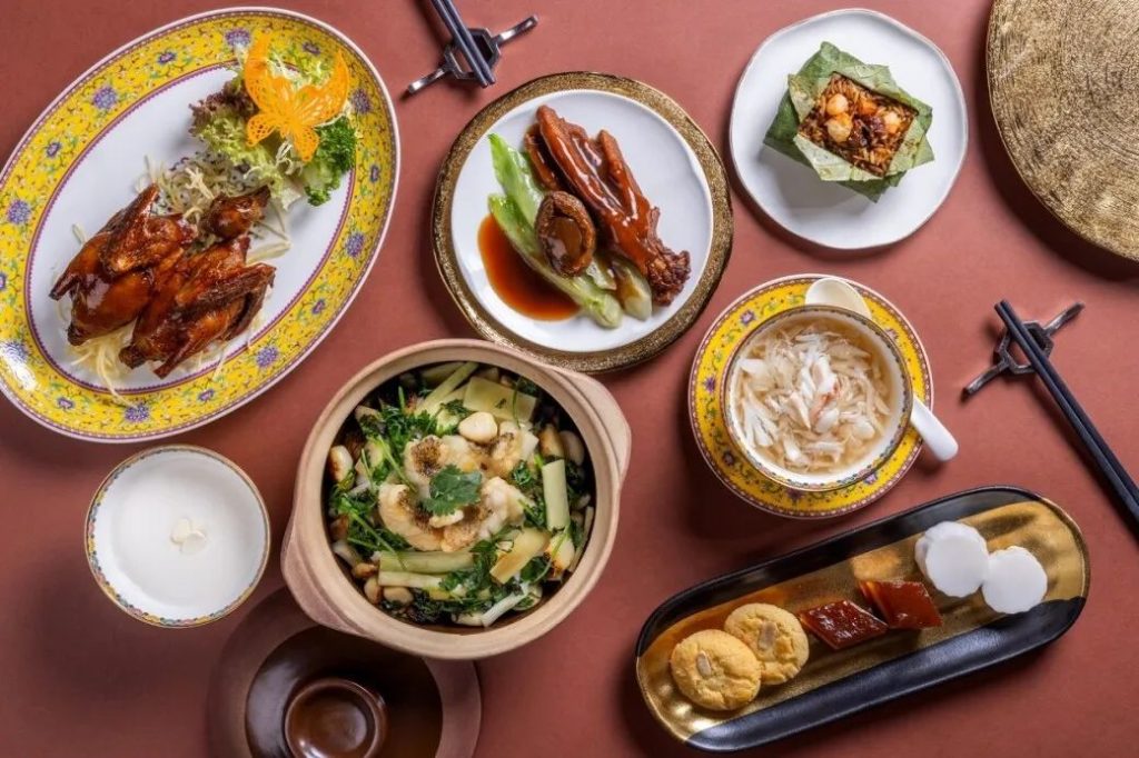 著名淮扬食府十里洋场推出「十里珍馐百味宴」,选用花胶、鲍鱼、鱼翅、和牛等矜贵食材,淮扬四小品包含四款轻盈清新的小菜:无钖烟熏䱽鱼香脆酸甜,酸辣福花微辣开胃,花雕醉花螺肥美嫩滑,最后配上菜脯花生豆干火鸡肾,咸香惹味。